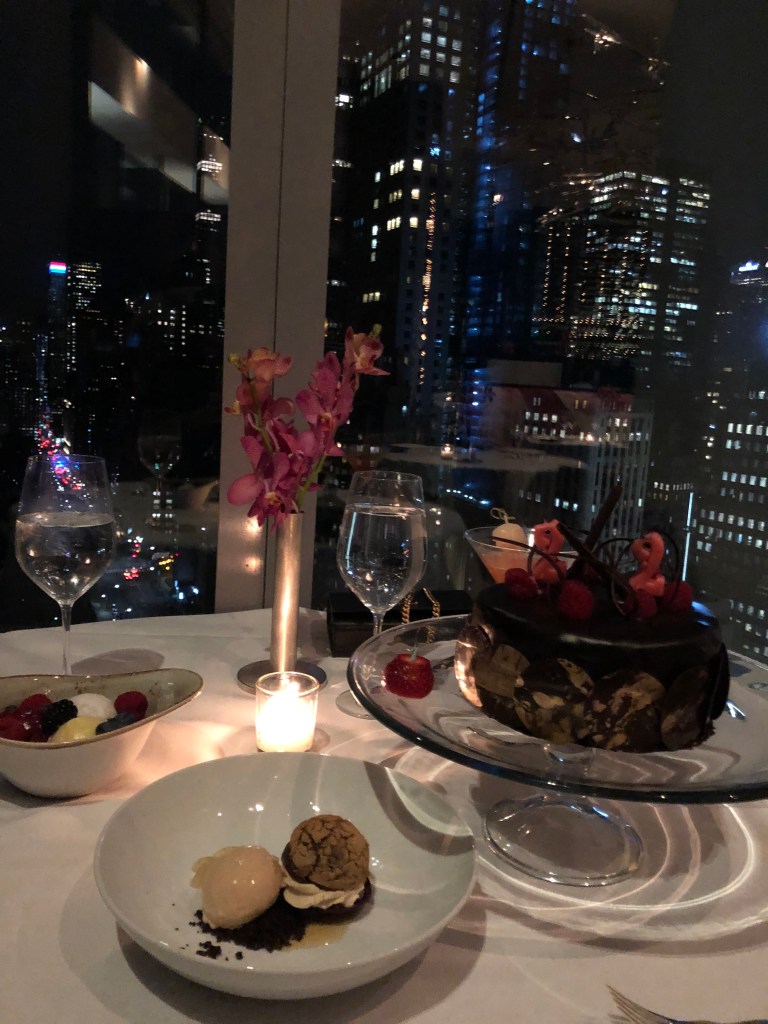 Opting for the three-course menu, I started with the Maine Lobster, an exquisite dish composed of radish, cucumber, and lemongrass. Note that there’s a $10 supplement for the Maine Lobster. For the second course, I chose the Lamb Loin, beautifully paired with eggplant, citron, and white polenta. The finale was the indulgent Chocolate Puff. Since it happened to be my birthday, I pre-ordered a cake from the restaurant, as they don’t allow outside cakes.