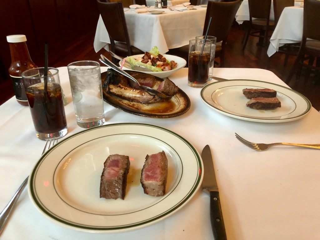 Since this restaurant is renowned as one of the top three steakhouses in NYC, it’s advisable to make a reservation. I learned this the hard way; not having made a reservation, I had to endure a wait of more than half an hour to get a table.