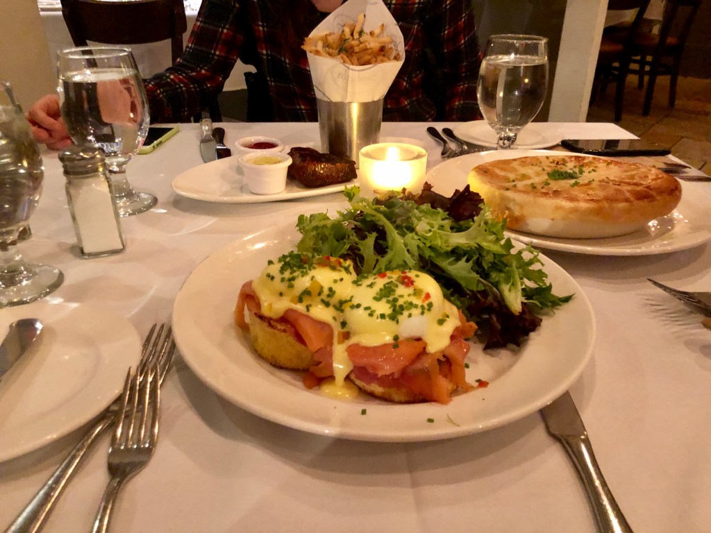 I’m pretty sure everyone has come across the drama called “Sex and the City.” Did you know that it’s shot in New York City? Well, I hear a lot of hypothetical “Yes” from my readers. If you’re a huge fan of the drama, you’ve got to check out the shooting locations. I visited one around 4 pm on a Saturday; my friends and I planned to go earlier, but we ended up waking up super late. Anyway, I ordered the Salmon Eggs Benedict, which was absolutely tasty. This dish includes two buns with raw salmon, a sunny side up egg, and a side salad. I mean, the classic eggs benedict never goes wrong.