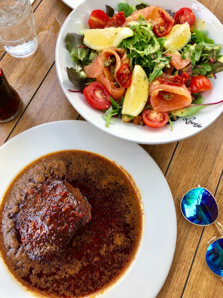 My MAIN:Beef tenderloin steak bali XL 🥩 (€29.95) and Smoked Salmon salad 🥗 (€16.25) MY drink: zoete witte wijn(€4.5) FOOD: ⭐️ ⭐️ ⭐️ ⭐️ ⭐️ SERVICE:⭐️ ⭐️ ⭐️ ⭐️ ATMOSPHER:⭐️ ⭐️ ⭐️ ⭐️ LOCATION:⭐️ ⭐️ ⭐️ ⭐️ ⭐️ PRICE:⭐️ ⭐️